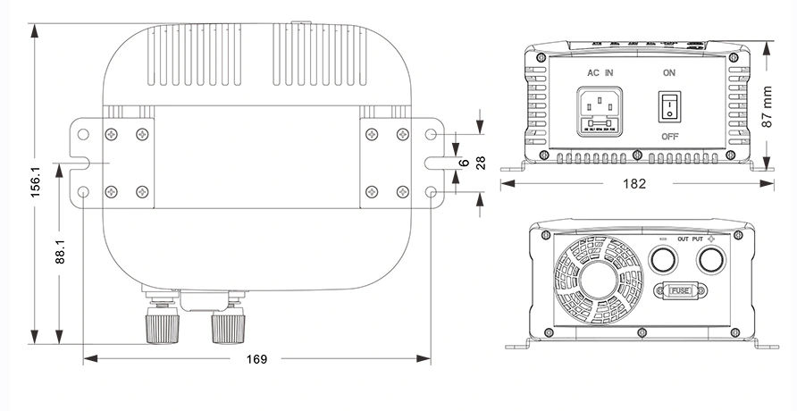 ຮູບແຕ້ມກົນຈັກ: (156.1 × 182 × 87mm)